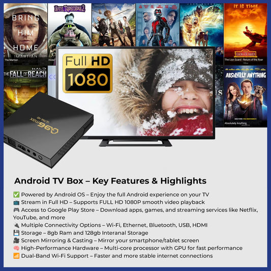 Q96 FULL HD Android TV Box Android 14.0 8GB RAM 128GB ROM Free HDMI 3000+ AppsRegular price Rs. 2,499.00Regular priceUnit price / perRs. 4,999.00Sale price Rs. 2,499.00Sale
