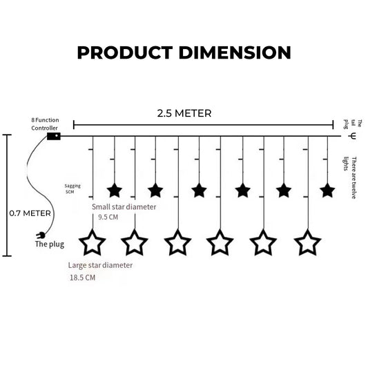 WRADER 2.5 Meters with 6 Big & 6 Small Star Light for Diwali Multicolor Home Decor Star Shower Laser Light