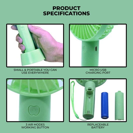 USB Rechargeable Portable Mini Hand Fan, USB Hand Fan with 3 Air Speed Modes USB Fan for Table Desktop Makeup USB Fan, Rechargeable Fan