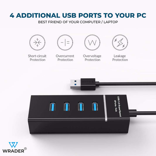 WRADER 5Gbps Super Speed USB 3.0 Hub 4 Ports USB Hub for Laptops, Desktops, Smartphones, USB Flash Drives,