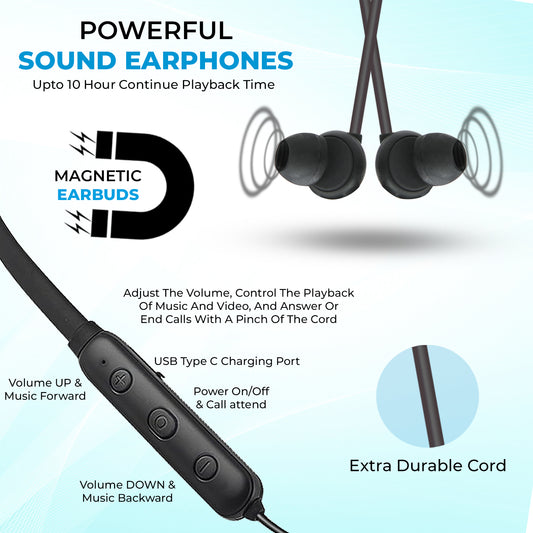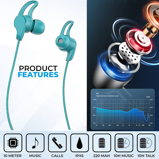 WRADER D33 Hifi Stereo Sound Wireless Bluetooth Neckband 10hrs Music Playtime Earphone Bluetooth Headset