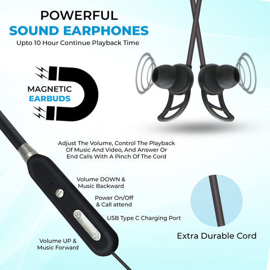 WRADER BT JAZZ Wireless Sports Bluetooth Neckband with Mic for All Smartphone Android & iPhone Gaming Headset