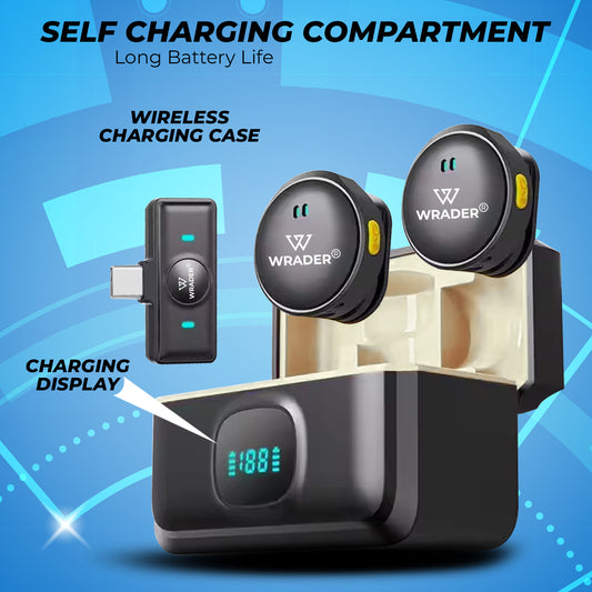 Wrader Q8 Wireless Microphone | Dual Mic Set with Noise Cancellation & Charging Case with Digital Display