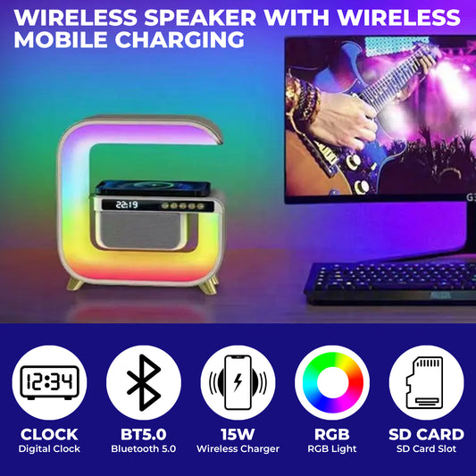 WRADER Multicolor LED G Speaker Night Lamp with Wireless Charger and Clock Google Lamp Night Lamp