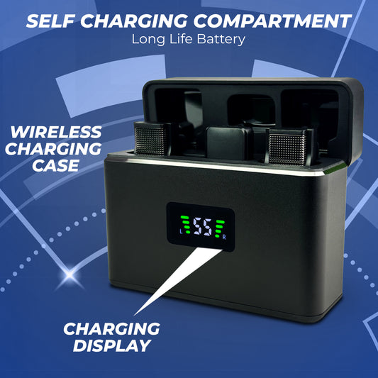 WRADER S16 Dual Wireless Mic with Noise Cancelling, Charging Display Case For Android & iPhone Video Recording Microphone