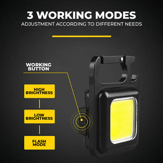 WRADER USB Rechargeable Keychain Torch Light Pocket COB Torch Light with 3 Working Mode 4 hrs Torch Emergency Light