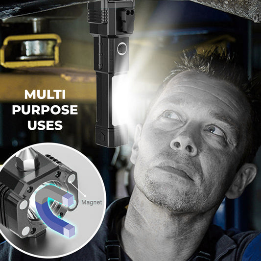 WRADER Safety Car Rescue LED Torch Light, Flashlight COB LED Light with Powerbank Hammer Torch