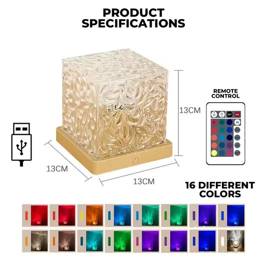 Wrader Water Wave Projection Lamp Ripple Small Night Light Creative Bedside Flame Atmosphere Lamp Dynamic Ice Cube Design Table Lamp For Decoration