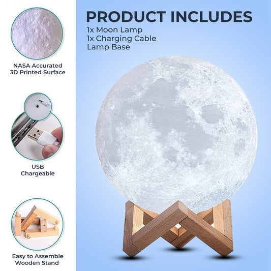 WRADER 3D Moon Lamp Night Moon Lamp with 7 Colors Light Glowing Modes Moon Light Night Lamp (15cm, Off-White)