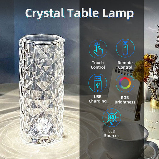 WRADER Rechargeable Crystal Lamp with 16 Color Modes Rose Diamond Table Lamp with Touch Night Lamp