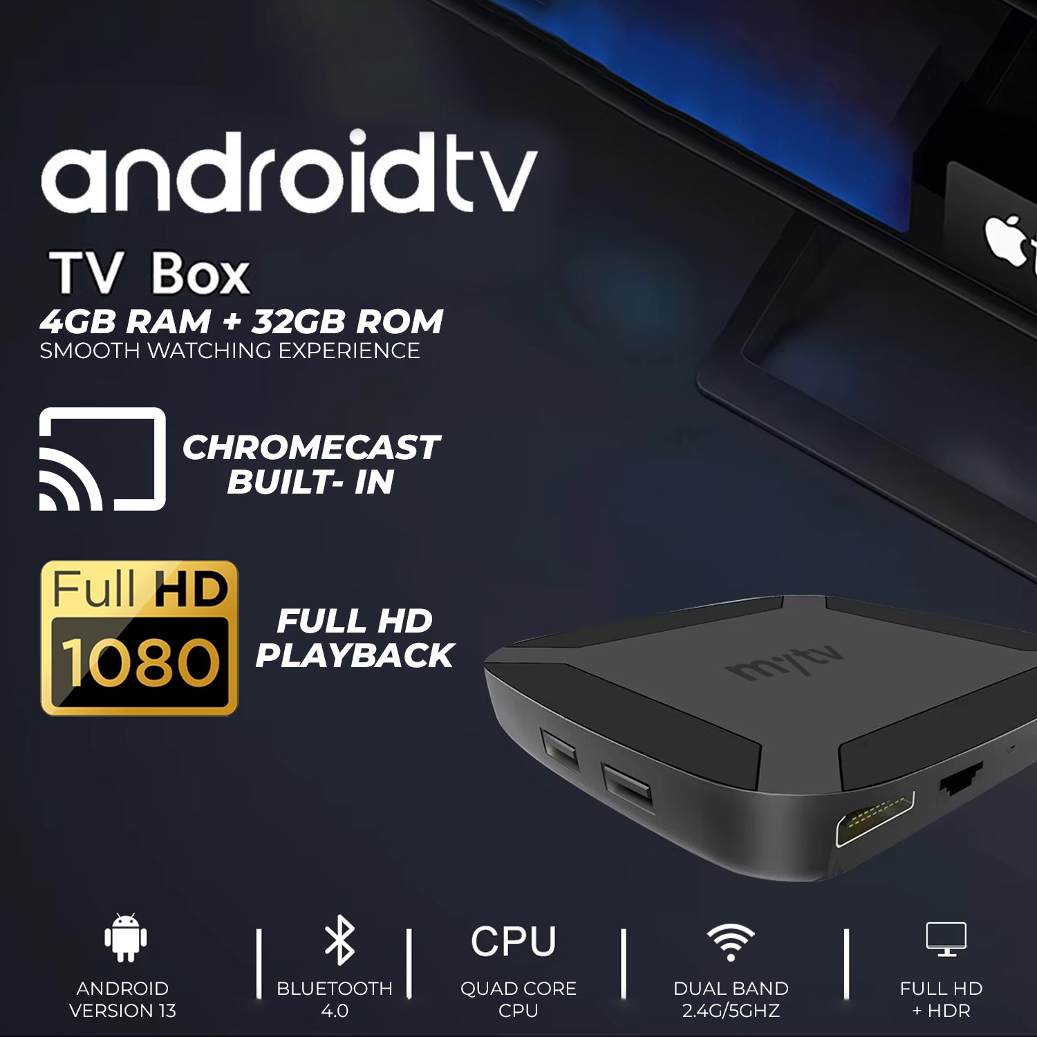 My tv Full HD 1080p Smart Android TV Set-Top Box with Built-in Chromecast & Google Assistant